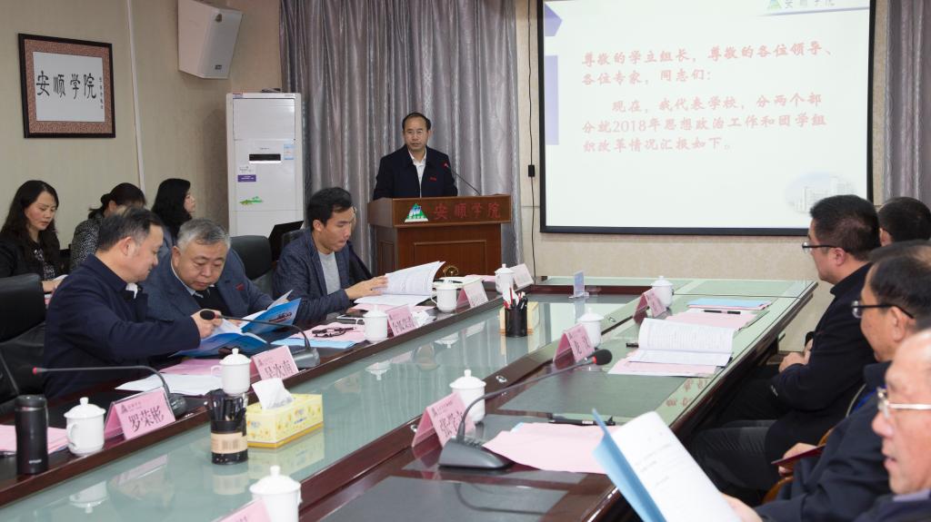 2018年11月29日,以贵州民族大学党委书记张学立为组长,兴义民族师范学院党委副书记李可迅为副组长,贵州大学团委书记龙汶、贵州师范大学求是学院党委书记尹毅、贵州民族大学组织部副部长、党建研究所所长刘勇为成员的贵州省普通高校思想政治教育工作检查专家组一行5人来到我校,对我校思想政治教育工作暨团学组织改革情况进行为期一天的检查。奇乐棋牌党委书记罗荣彬、校长吴次南、党委副书记陶文彩、副校长令狐荣涛,各二级学院、各部、处室部门主要负责人,3位学生家长及思想政治教育工作迎检办成员全程参加检查工作。