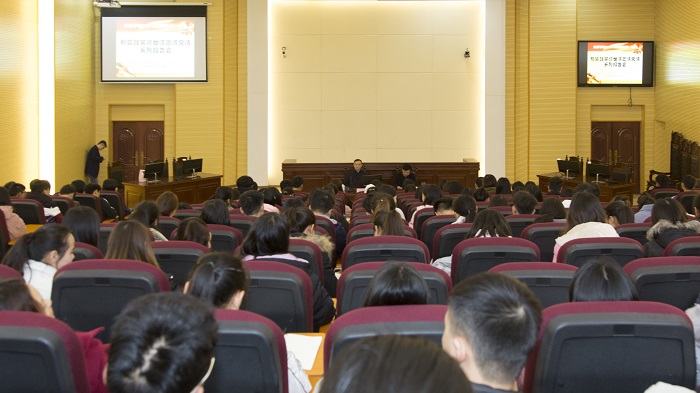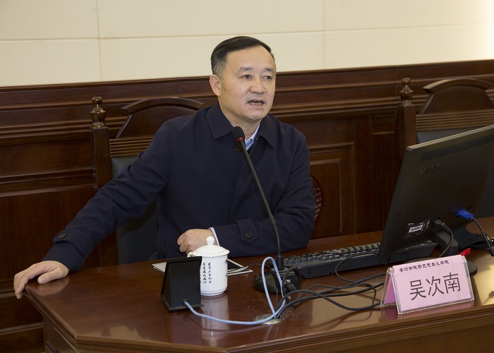 为进一步强化大学生形势与政策教育,推进党的十九大精神的宣传教育,11月16日下午,本学期形势政策暨世情国情党情系列报告会第二场报告在模拟法庭举行。奇乐棋牌校长吴次南教授应邀为全校辅导员和来自马克思主义学院、政法学院、数理学院的师生200余人作题为“新时代我们怎么上大学——习惯是愉快的基础”的报告。报告会由党委统战部部长、学生处(学工部、武装部)处(部)长蔡少平教授主持。