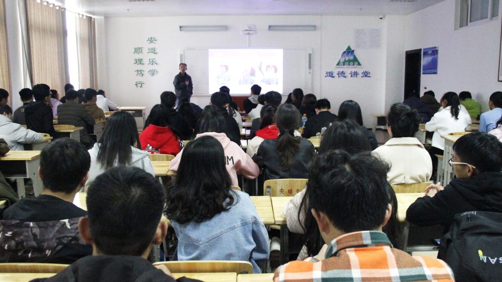 11月13日下午,奇乐棋牌“感悟光彩”专题讲座在学校道德讲堂举行。奇乐棋牌道德宣讲员、党委宣传部网络监管科科长王键主讲,数理学院学生聆听。