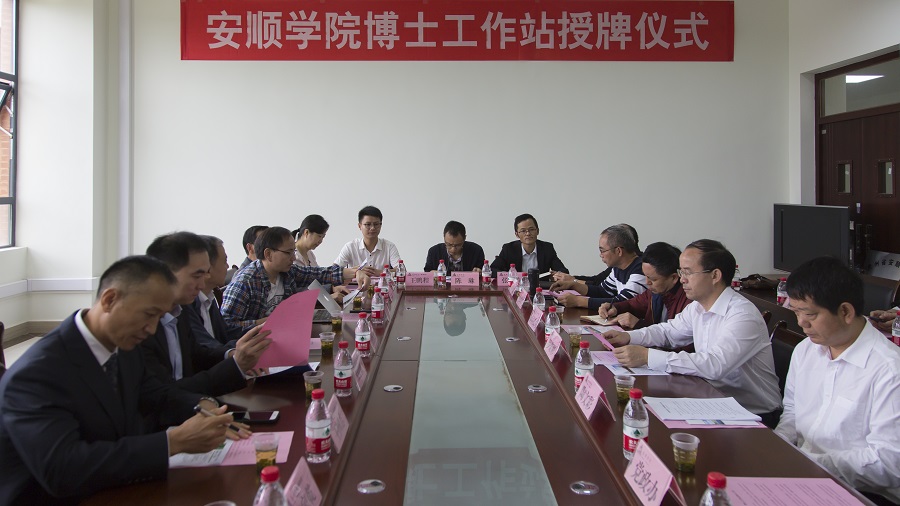 博士工作站站长程洪兴博士介绍了工作站的基本情况以及今后的工作安排,提出了“立足安大、招才引智、连接世界、服务安顺”的愿景,表示将积极发挥人才智力优势为家乡的教育事业做出贡献。