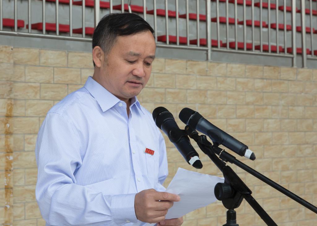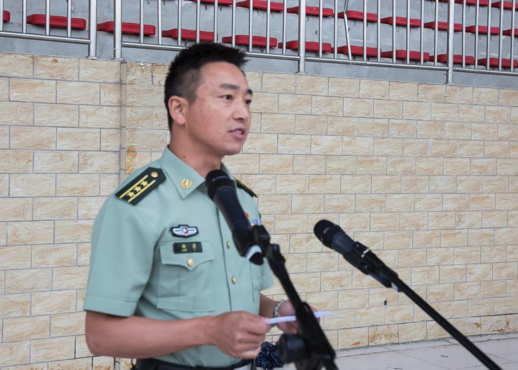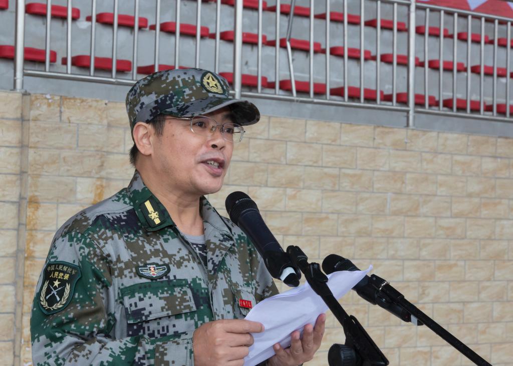 军训团政委、临时党委书记、副院长王芳恒作军训动员讲话