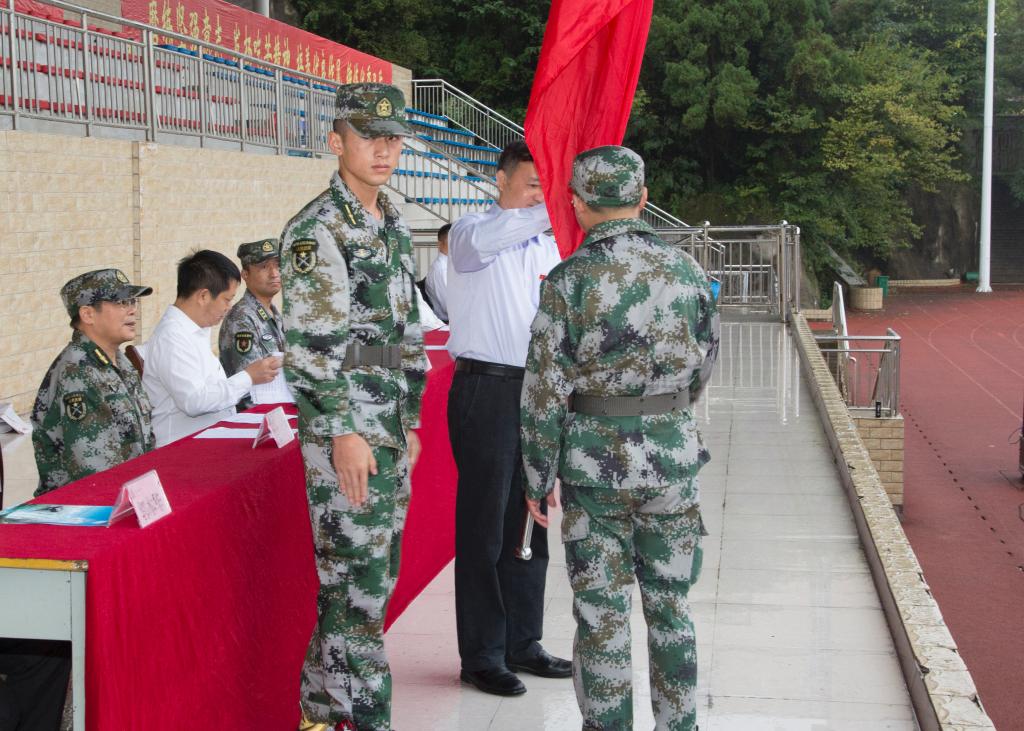 吴次南院长向军训团授旗