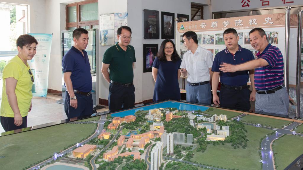 凯里学院副院长江晓谷(左三)一行参观我校改扩建规划沙盘