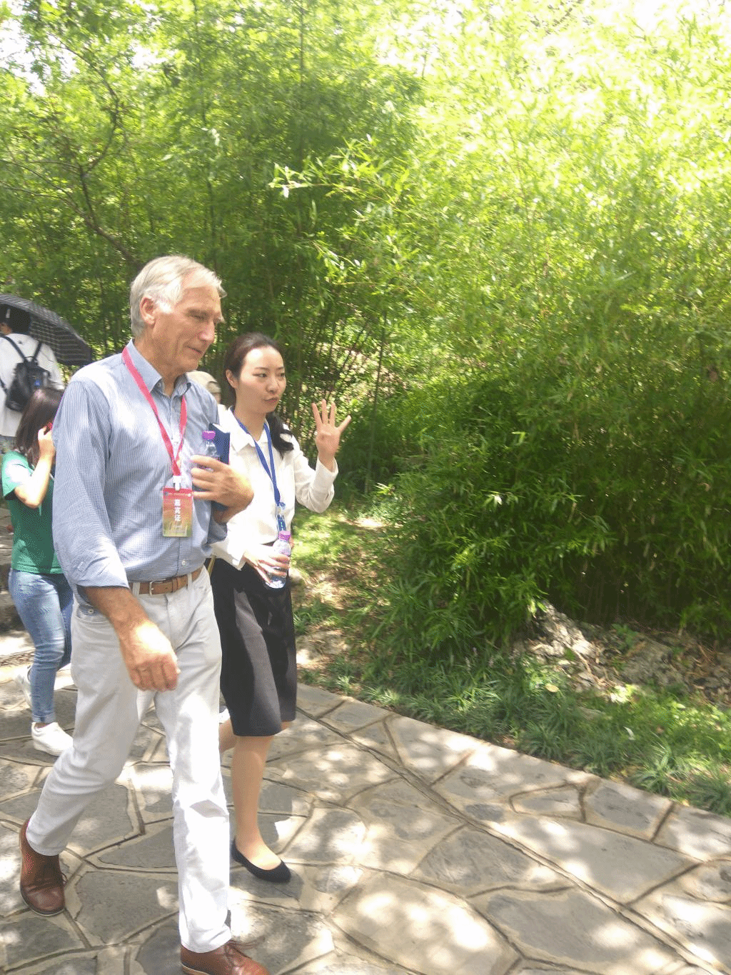 赵小钥老师为外籍嘉宾(世界自然保护联盟大洋洲区域理事、澳大利亚蓝山世界遗产研究所主席)Peter·Cochrane翻译黄果树景区自然文化