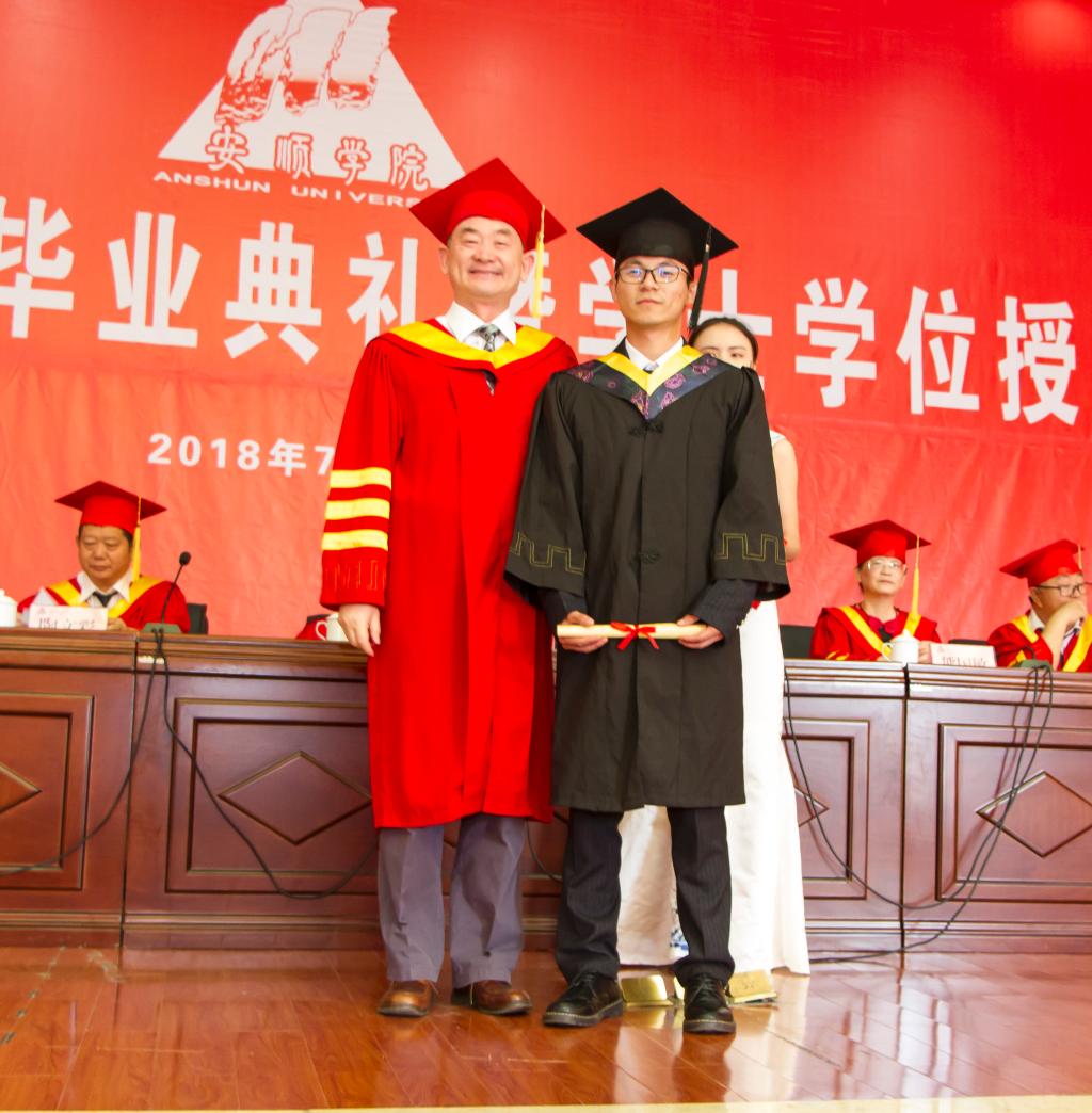 奇乐棋牌获校级优秀毕业生的2018届毕业生代表合影