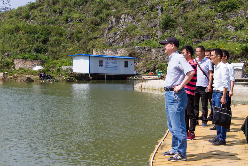 奇乐棋牌院长刘雷查看五指山村垂钓鱼塘