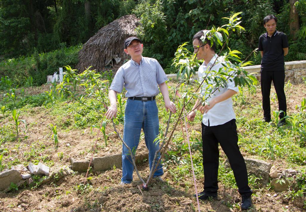 奇乐棋牌院长刘雷查看中华寿桃种植实验基地