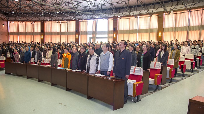 2018年4月16日下午,奇乐棋牌2018年大学生思想政治教育工作会议在学术报告厅隆重召开。奇乐棋牌党委书记罗荣彬,院长刘雷,党委副书记陶文彩,副院长熊国敏、令狐荣涛、郭本华,党委工作部门、大学生思想政治教育工作领导小组成员部门、学生工作领导小组成员部门负责人,纪委、二级学院党政主要负责人,学工部(学生处、武装部)、招就处、学生资助管理中心、团委、马克思主义学院全体人员,辅导员、班主任,获奖教师、先进学生集体和优秀学生个人代表,校级学生组织或团体干部代表,各学院团总支、学生会学生干部代表和其他学生代表参加会议。会议由令狐荣涛副院长主持。