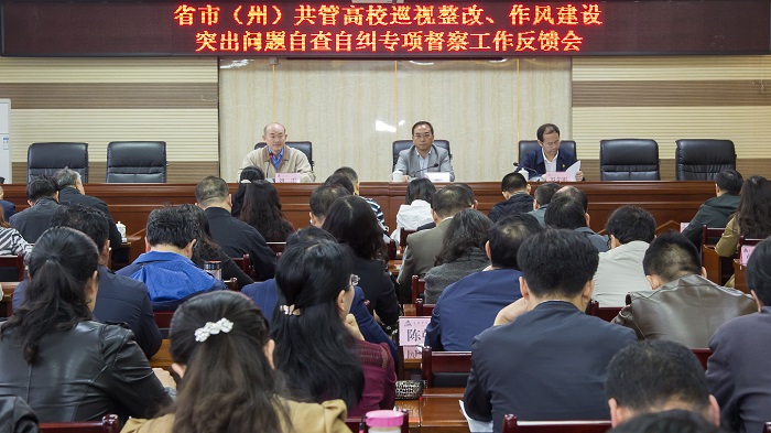 省委教育工委第三专项督察组督察奇乐棋牌党委巡视整改和作风建设情况反馈会议会场