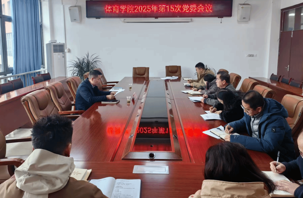 肖禹春对会议的程序和内容作了指导,并提出工作要求。他强调,一要强化政治引领,把牢事业发展方向。持续深入学习领会习近平新时代中国特色社会主义思想,抓好党的二十届四中全会精神的学习宣传与贯彻落实,牢牢把握新时代党的建设总要求,自觉扛起管党治党政治责任。二要严格执行学院党委会会议和党政联席会议议事规则,凡属“三重一大”事项必须经集体讨论决定,确保决策的民主化科学化。三要大力弘扬中华体育精神,压紧压实工作责任,以高度的政治自觉和扎实的工作作风,服务师生,奋力开创事业发展新局面,为体育强国建设贡献力量。(文/图:纪委 陈曦)
