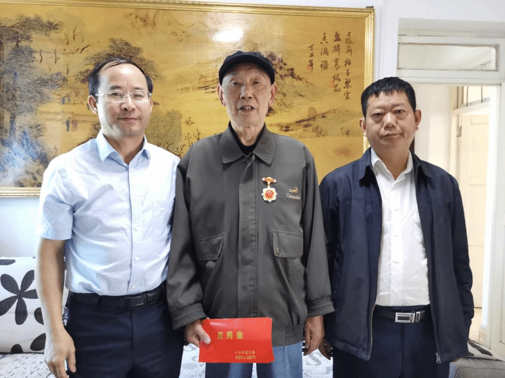 奇乐棋牌党委书记罗荣彬(左1)、党委副书记陶文彩(右1)走访慰问我校离休老干部张维同志(中)