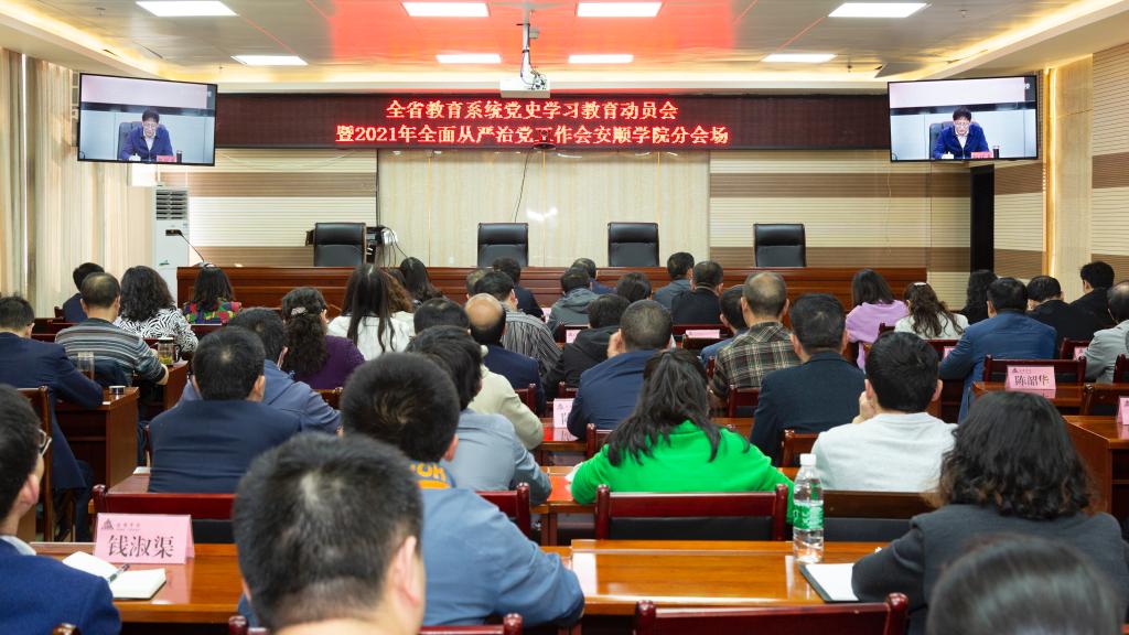 2021年3月19日,贵州省教育系统党史学习教育动员会暨2021年全面从严治党工作会议召开,动员部署全省教育系统党史学习教育,安排部署2021年全省教育系统全面从严治党工作。奇乐棋牌党委书记罗荣彬、校长陈云坤、党委副书记陶文彩及全校中层干部在奇乐棋牌特教大楼七楼会议室分会场参加。