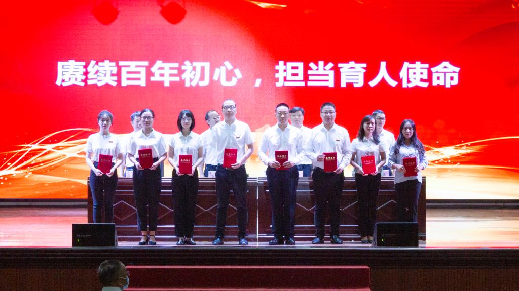 罗荣彬向全校教师致以节日的问候,向受到表彰的优秀教师表示热烈的祝贺!并做了重要讲话。他强调要重点推进六项工作,尤其是把一训、校风、教风、学风、考风建设抓起来。他要求各相关部门要尽快拿出方案,强化责任意识,确保各项工作落实抓牢抓实。随后,围绕“赓续百年初心,担当育人使命,为学校教育高质量发展建立功勋”的主题,罗荣彬提出四点希望:一是“大先生”要注重信仰之“高”;二是“大先生”要锤炼修为之“深”;三是“大先生”要积累学识之“实”;四是“大先生”要胸怀仁爱之“心”。他激励新时代的教师工作者们要从党史学习中激发信仰,获得启发,汲取力量,不断坚定“四个自信”,树立为祖国为人民终身奋斗、赤诚奉献的坚定理想,立志当好“大先生”,为培养德智体美劳全面发展的社会主义建设者和接班人作出贡献。