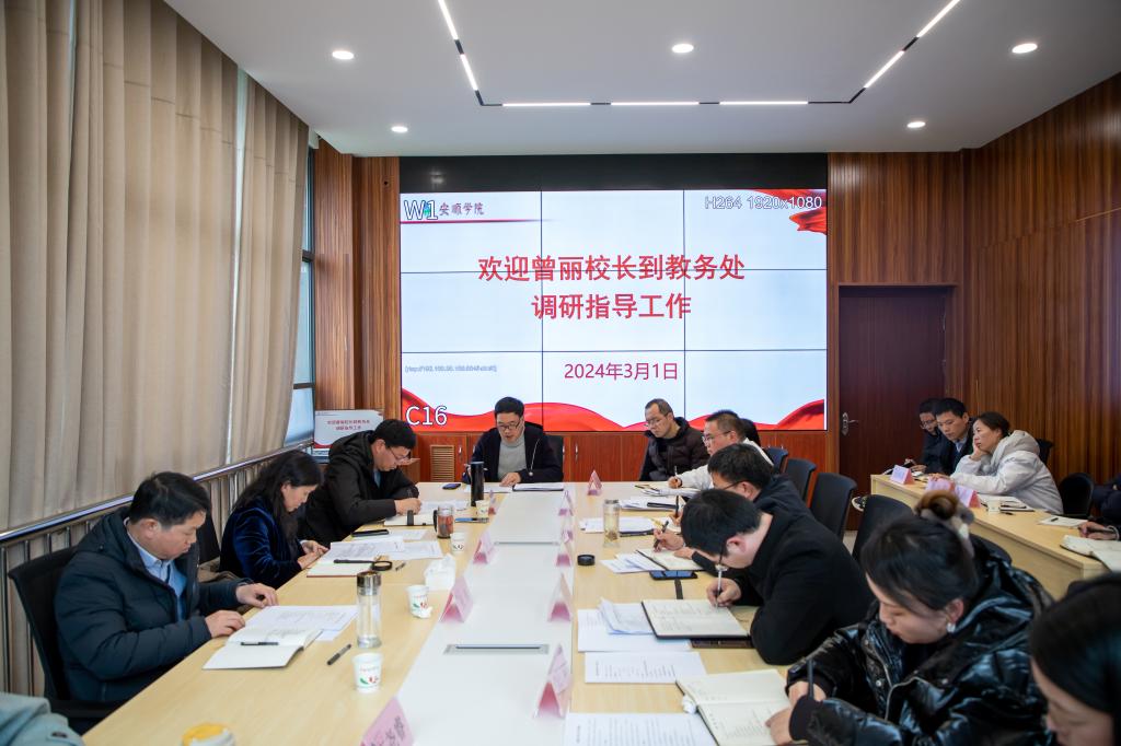 2024年3月1日,奇乐棋牌校长曾丽到教务处、教学质量监测与评估中心调研指导工作。奇乐棋牌副校长张来、党政办公室主任马明陪同调研,教务处、教学质量监测与评估中心全体人员参加会议。