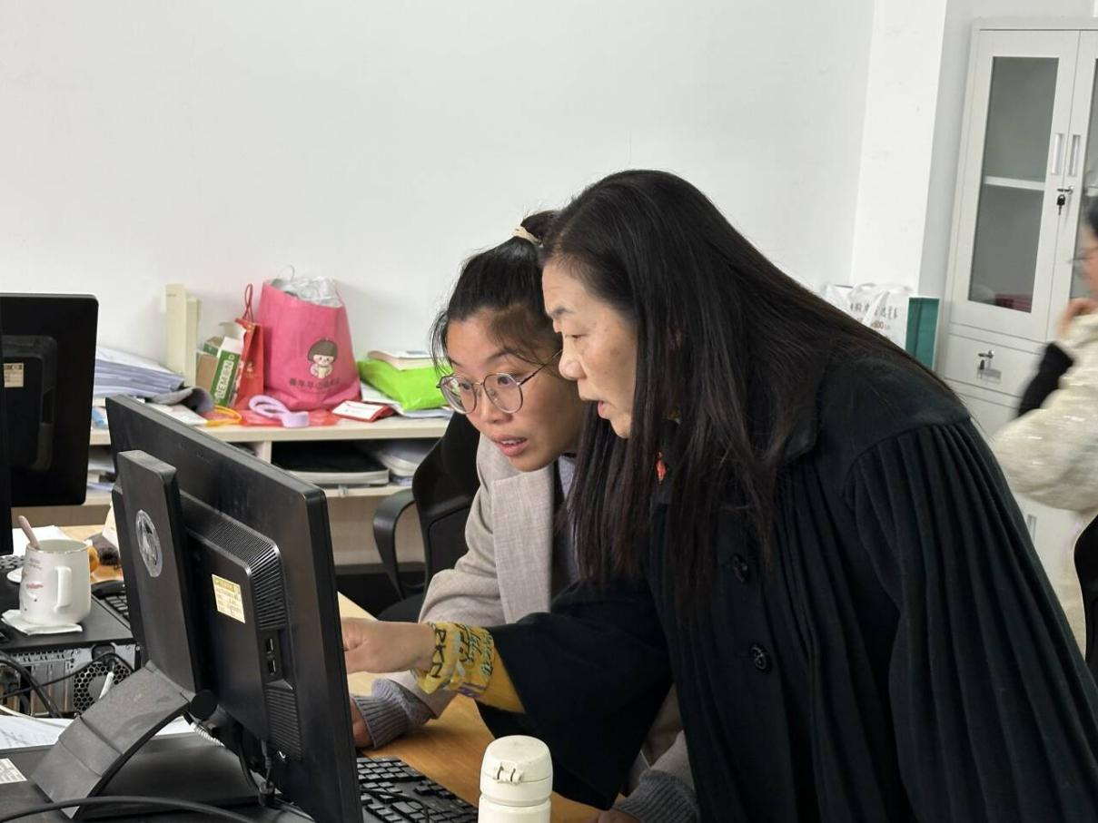 奇乐棋牌党委委员、纪委书记、监察专员蔡红英(右)到评建办指导工作
