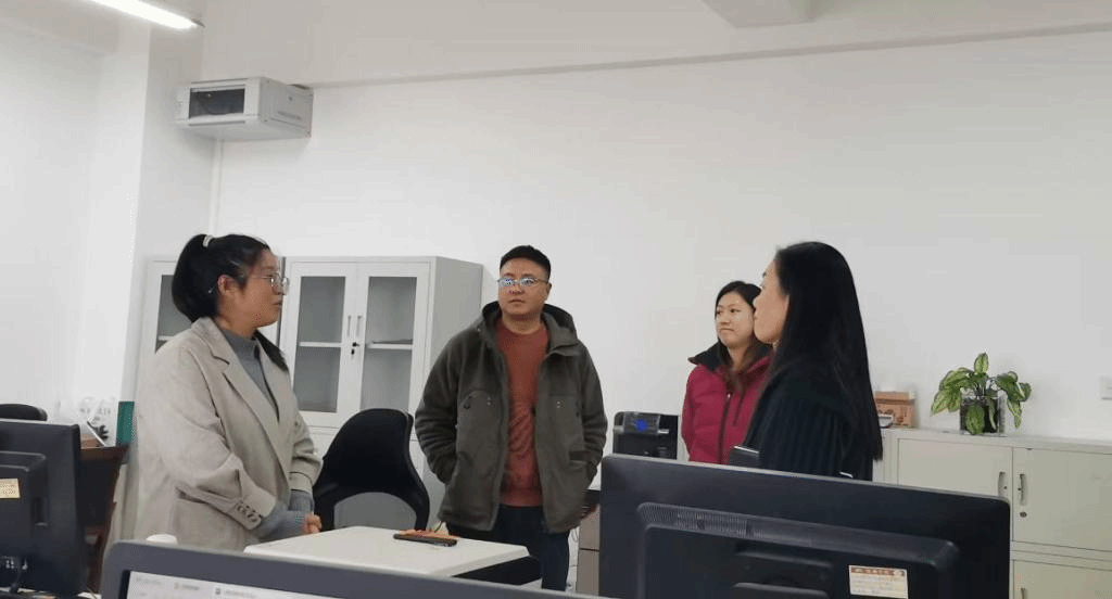 奇乐棋牌党委委员、纪委书记、监察专员蔡红英(右一)到评建办指导工作