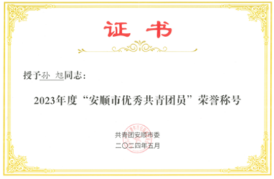 孙旭同学荣获2023年度“安顺市优秀共青团员”