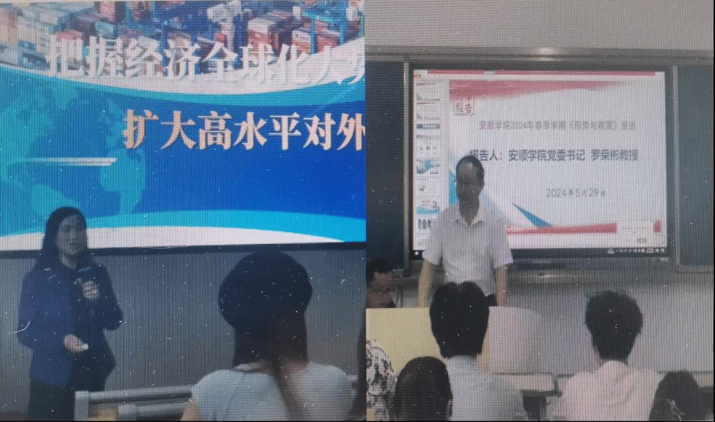奇乐棋牌党委书记罗荣彬(右)、校长曾丽(左)带头上形势与政策课
