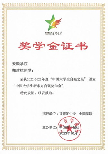 孙旭同学荣获2023年度“安顺市优秀共青团员”