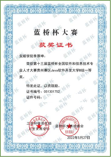 3.以学科竞赛为载体,提高学生知识应用能力。抓牢计算机程序设计大赛、蓝桥杯学术竞赛、全国大学生数学建模竞赛、数学竞赛等赛事,培养学生刻苦钻研、吃苦耐劳、精益求精的拼搏精神,引导学生把专业知识应用到实际问题中解决。获蓝桥杯全国软件和信息技术专业人才大赛贵州赛区一、二、三等奖20项;获第八届全国大学生统计建模大赛国家级三等奖2项、省级一等奖2项、三等奖1项;获第十四届全国大学生数学竞赛贵州省一等奖3项、二等奖6项、三等奖13项;获全国大学生数学建模竞赛贵州省级一、二、三等奖5项;获全国大学生英语词汇竞赛国家级三等奖1项;获贵州省工业和信息化技能大赛数字化解决方案设计师S(工业大数据算法)赛项学生组贵州省级三等奖2项;获第16届中国大学生计算机设计大赛总决赛(济南决赛区)国家级三等奖1项;获第17届中国大学生计算机设计大赛贵州赛区决赛贵州省级三等奖1项(已被推荐参加国赛);获第26届中国机器人及人工智能大赛贵州赛区一等奖2项、二等奖3项(已被推荐参加国赛);获全国大学生市场调查大赛国家级三等奖2项、省级一等奖1项、三等奖1项。