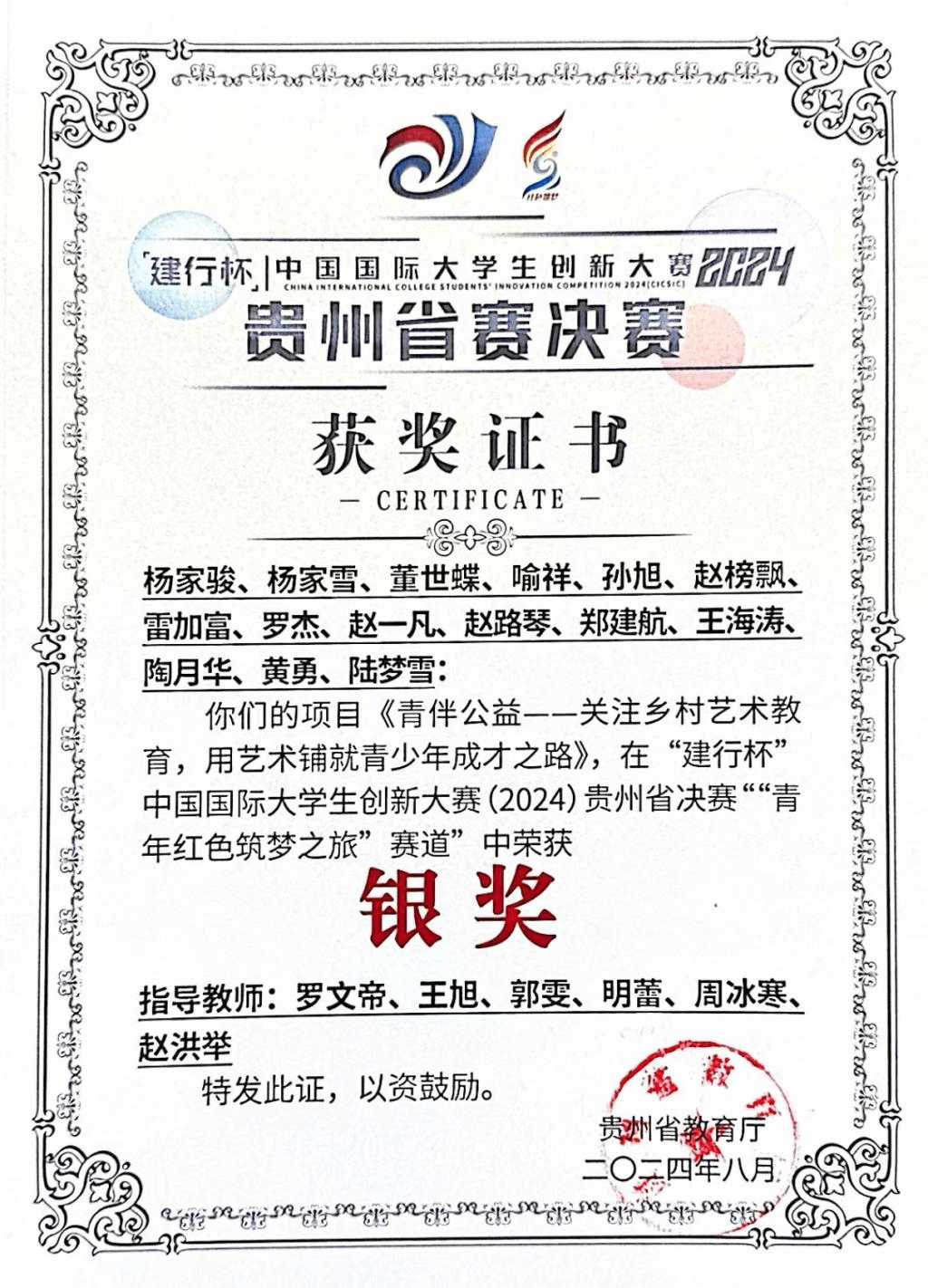 孙旭同学参与的“青伴公益”项目—获得中国国际大学生创新大赛(2024)贵州省级银奖
