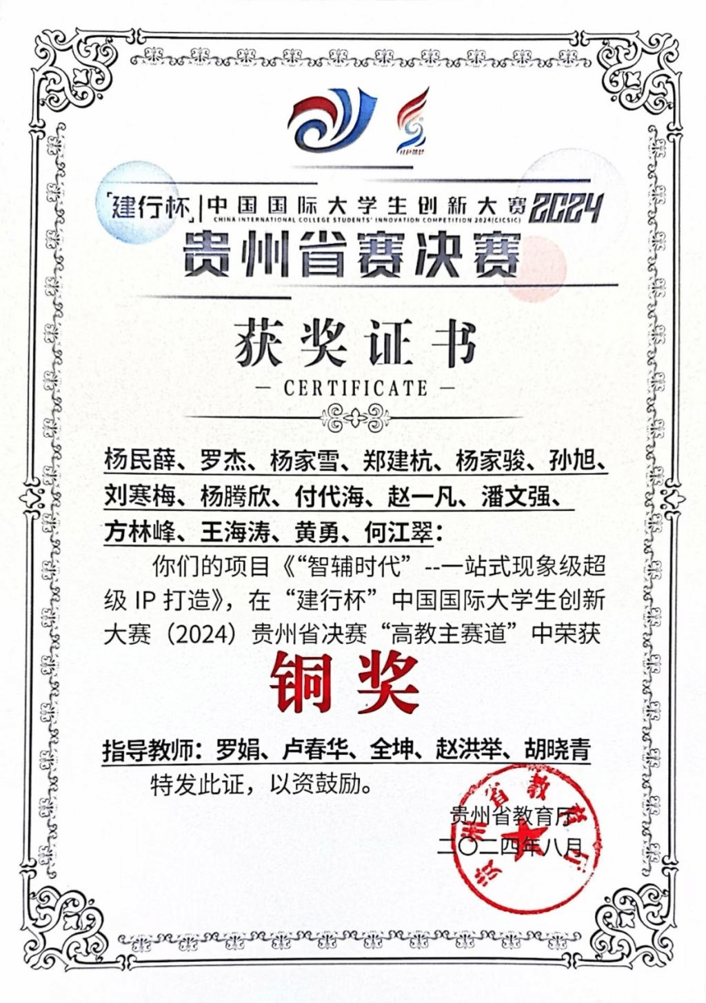 孙旭同学参与的“智辅时代”项目—获得中国国际大学生创新大赛(2024)贵州省级铜奖