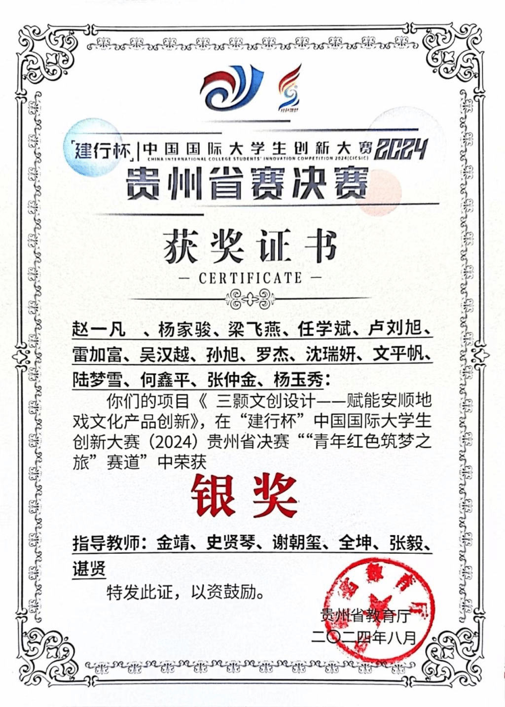 孙旭同学参与的“三颢文创设计”项目—获得中国国际大学生创新大赛(2024)贵州省级银奖