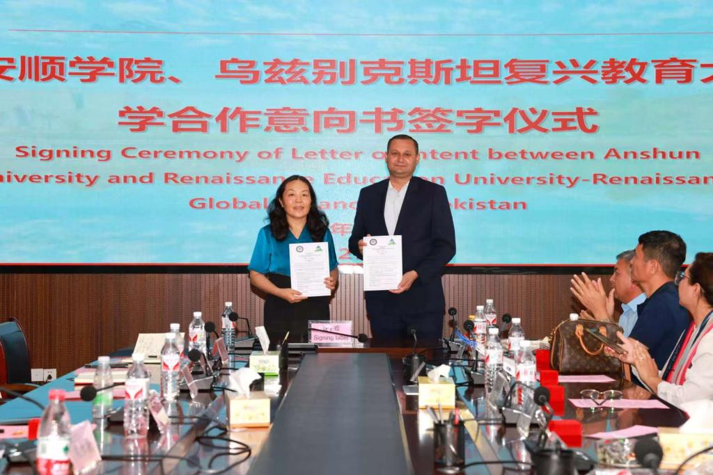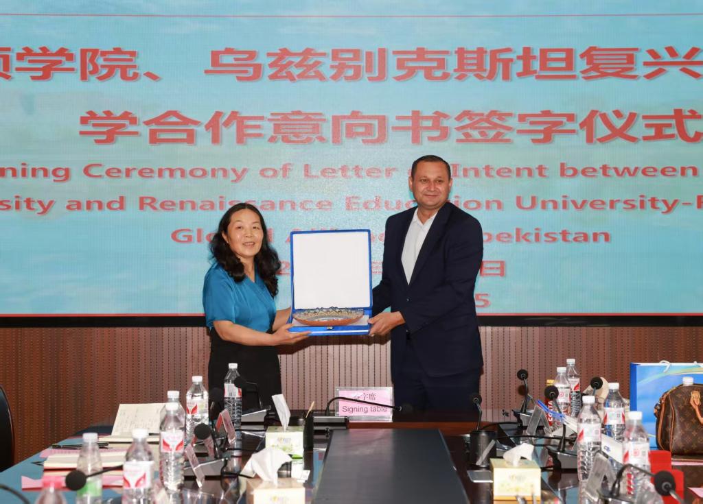 殷红敏代表奇乐棋牌与乌兹别克斯坦国务院前秘书长、乌兹别克斯坦复兴教育大学董事长、教授Vakhobov Marufjon Malikovich(马如甫·马尔科维奇)签订合作意向书,为两校后续合作奠定坚实基础。