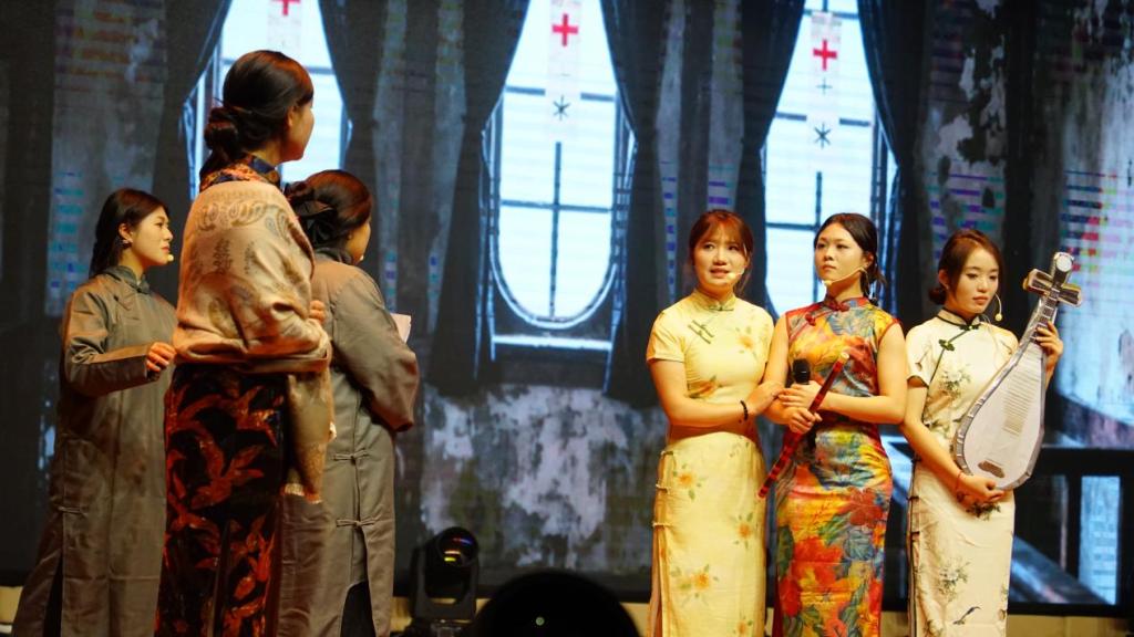 “抗争与怒吼”篇章,紧扣抗战纪念主题;合唱团献唱《保卫黄河》,激昂旋律诠释民族觉醒力量;《金陵微光》以舞台剧形式,在历史叙事中挖掘黑暗中的希望,再现英雄先辈的坚守与担当;二重唱《不忘初心》,则以深情歌声串联历史与当下,传递对初心信念的坚守。