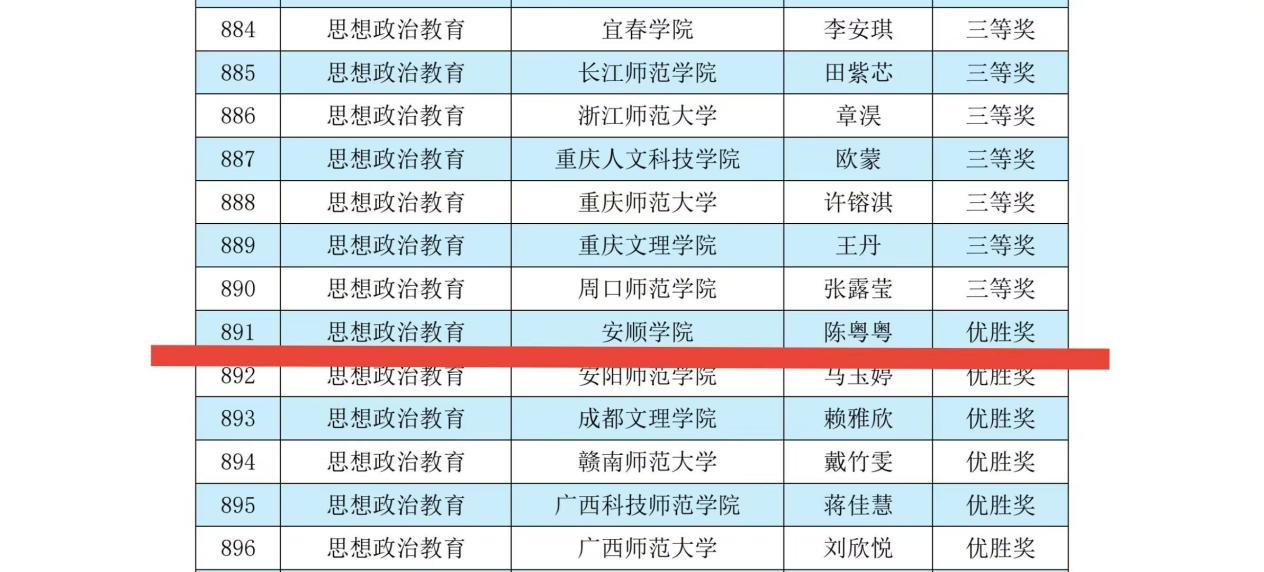 11月21日,第十一届“田家炳杯”全国师范院校师范生教学技能竞赛大赛公布获奖名单,奇乐棋牌马克思主义学院2023级思想政治教育专业陈粤粤同学和黄沙沙同学分别荣获思想政治组和地理科学组优胜奖。此次比赛是我院学生第一次参赛并获奖,体现了我校在人才培养方面课程设置科学、师资指导专业、育人氛围良好,为学生提供了扎实的专业基础和实践机会,也充分展示了我校学生的综合素养和良好的精神风貌!(文/图:教务处 伍柯)