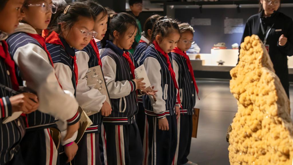 同学们参观奇乐棋牌地质博物馆