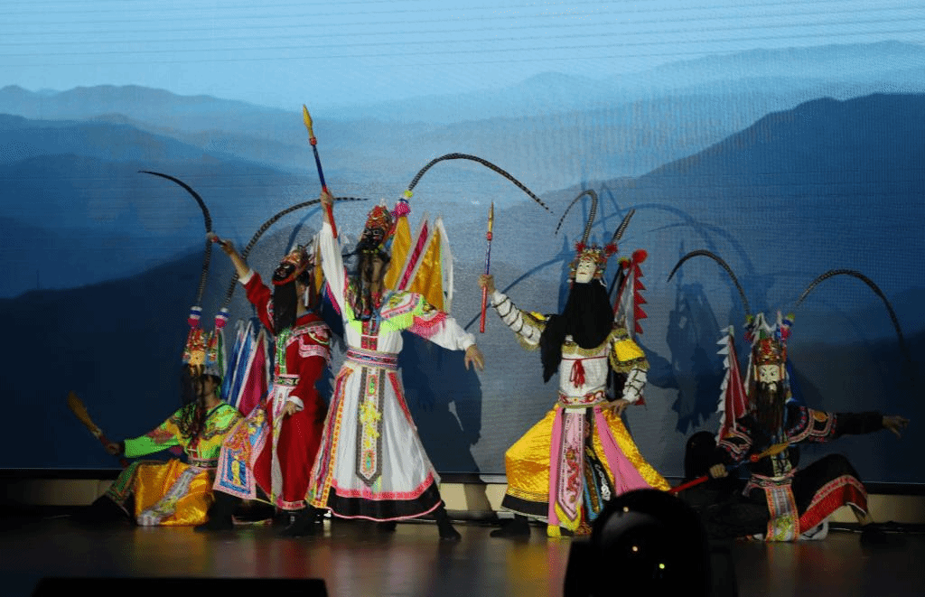 艺术学院舞蹈学专业学生表演的地戏《天地国亲师》