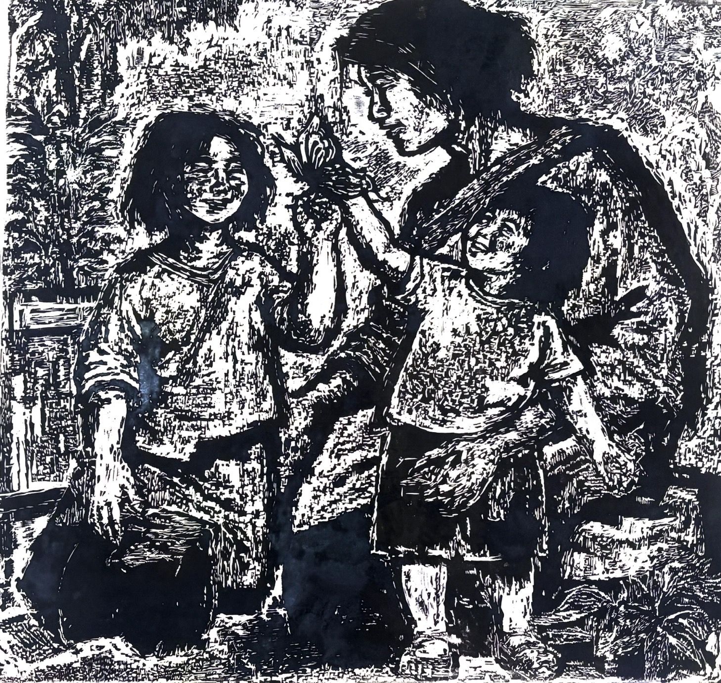 陈彦希-版画作品《孩子与蝶》(学生组二等奖,指导教师:杜晓梦)