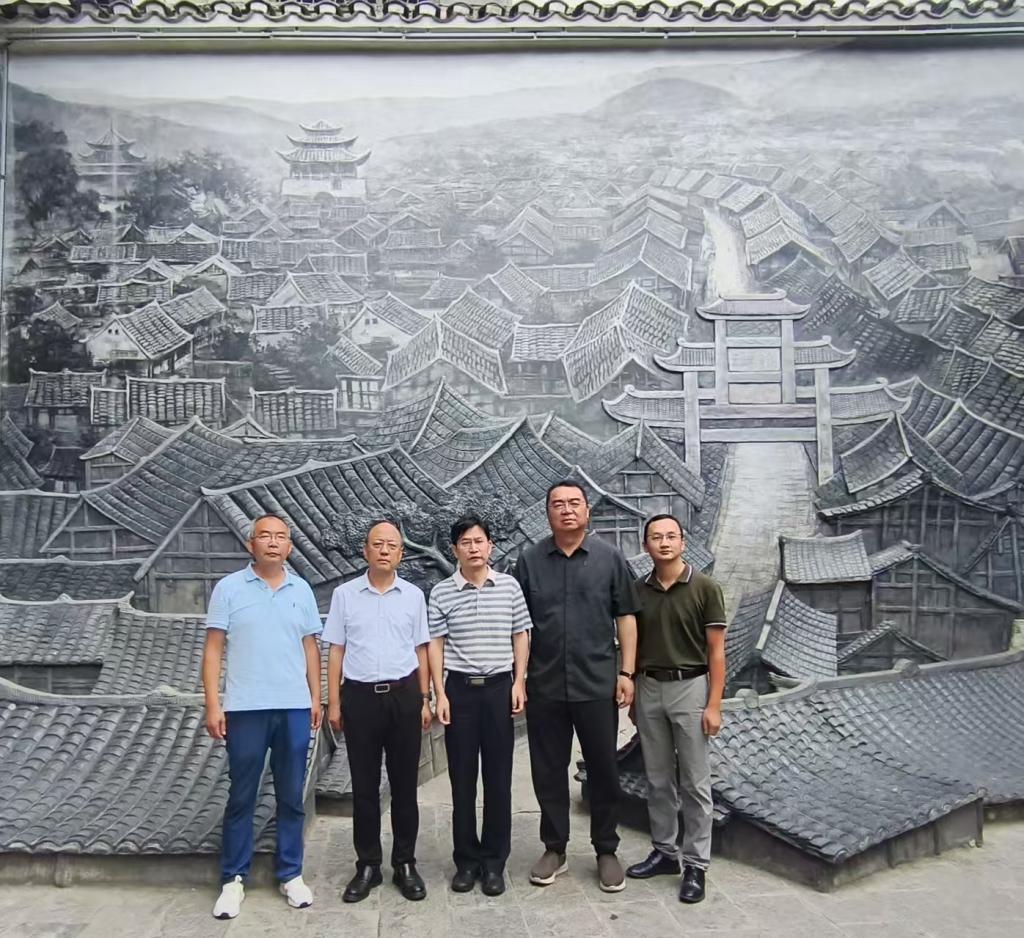 奇乐棋牌名誉院长石培华(中)、学院党委书记程绪权(左二)安旅集团董事长吴宏建(右二)考查古城