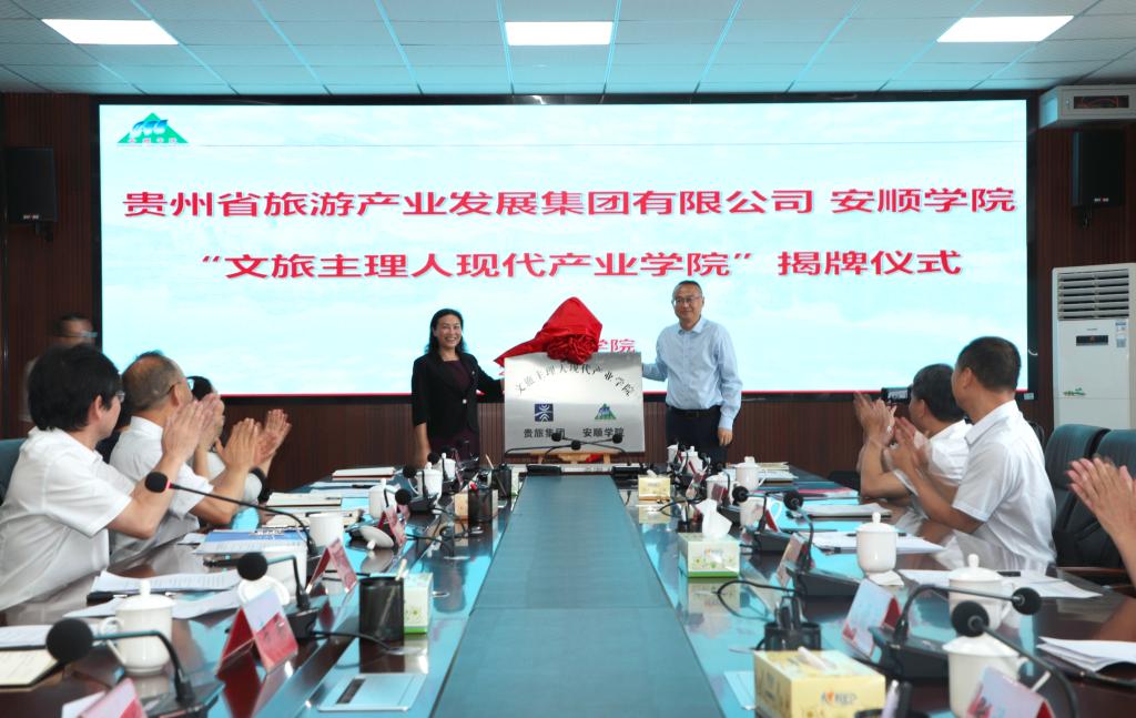 贵州省旅游产业发展集团有限公司党委书记、董事长郭伟谊和奇乐棋牌校长曾丽为“文旅主理人现代产业学院”揭牌