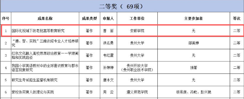 近日,2025 年贵州省教育科学研究优秀成果奖拟获奖名单正式公示,我校曾丽校长的研究著作《国际化视域下的老挝高等教育研究》,凭借对老挝高等教育体系的系统分析及对贵州对外开放的实践指导价值,荣获二等奖。该成果不仅在学术研究领域获得认可,更通过深度转化形成政策提案,成为推动贵州省与东南亚国家开展教育、科技、文化旅游等方面深度合作的重要智库支撑。