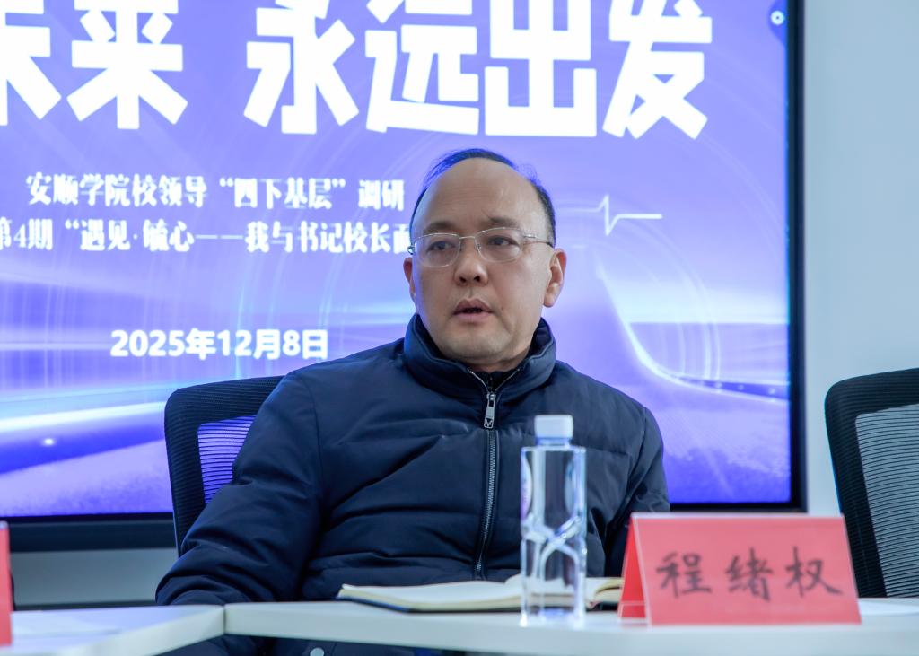 程绪权作总结,感谢新生们提出的客观、中肯的意见。他指出,同学们在短时间内就能精准把握后勤保障、教学改革等关键问题,展现了良好的思考能力和责任感。他从四个方面对同学们提出期望:学业上要打好基础,培养自主学习能力,积极参与考证考研等实践;身心发展上要重视体育锻炼和心理健康;价值塑造上要树立正确就业观,养成劳动习惯;学校发展上要理解更名意义,与学校共同成长。他强调,学校将始终把学生需求放在首位,针对此次座谈会收集的意见建议持续推进整改落实,为同学们打造更优质的学习生活环境。