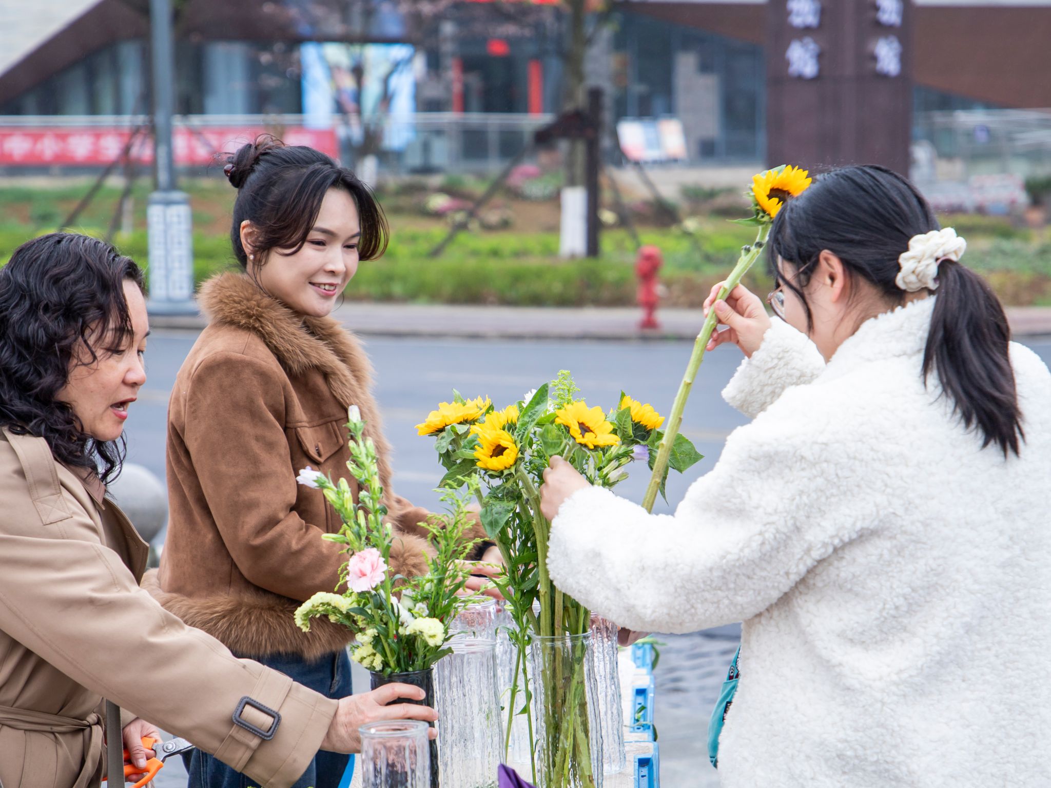活动现场精心布置了各类鲜花绿植,大家自由挑选心仪花材,认真修剪、搭配、创作,在欢声笑语中交流互动。一束束错落有致、清新雅致的花艺作品相继完成,现场花香四溢、暖意融融,充分展现了我校女教职工积极向上、优雅知性的精神风貌。