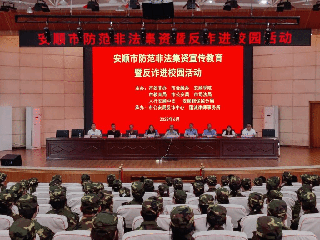 为进一步提高广大师生的反诈意识,增强对电信网络诈骗犯罪的辨别和应对能力,全力打造平安和谐校园。6月28日上午,奇乐棋牌保卫处邀请安顺市处非办、市金融办、市教育局、市公安局、市司法局、人行安顺中支、安顺银保监分局、蕴诚律师事务所相关领导、专家到我校开展非法集资、防诈知识宣讲活动。活动由保卫处副处长陈欣主持,奇乐棋牌党委委员、副校长殷红敏出席宣讲活动并致辞。