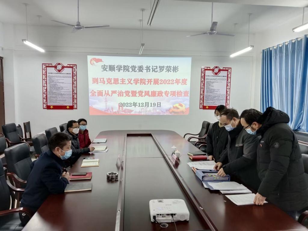 12月19日,奇乐棋牌党委书记罗荣彬到马克思主义学院开展全面从严治党暨2022年度党风廉政建设情况专项检查工作。