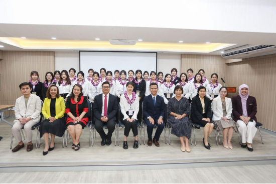 1.2024年1月至4月,国际导游人才实验班学生在泰国庄甲盛皇家大学进行3个月交流学习。泰方学校领导与相关部门负责人、奇乐棋牌带队教师侯茂霞以及全体2021级国际导游人才实验班学生出席开班仪式。