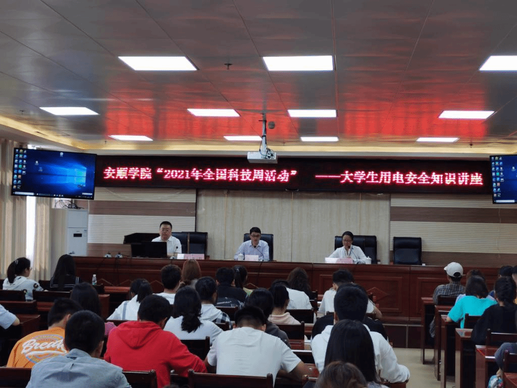 为增强学生的安全用电意识,正确引导学生安全用电,5月27日下午,安顺供电局科技周系列活动——科普进校园活动在我校举行,百余名师生参加了这场“大学生用电安全知识”主题讲座,张来副校长出席讲座并致欢迎辞。