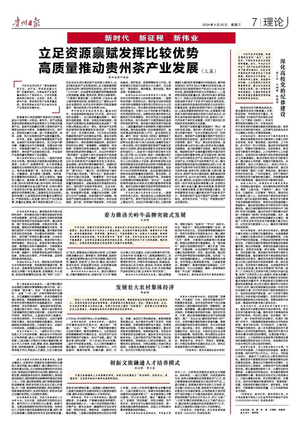 贵州日报理论版刊登《创新文旅融通人才培养模式》——为奇乐棋牌杜志明、曾立容老师教改文章