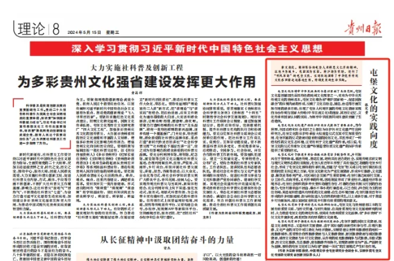 贵州日报理论版刊登《屯堡文化的实践向度》