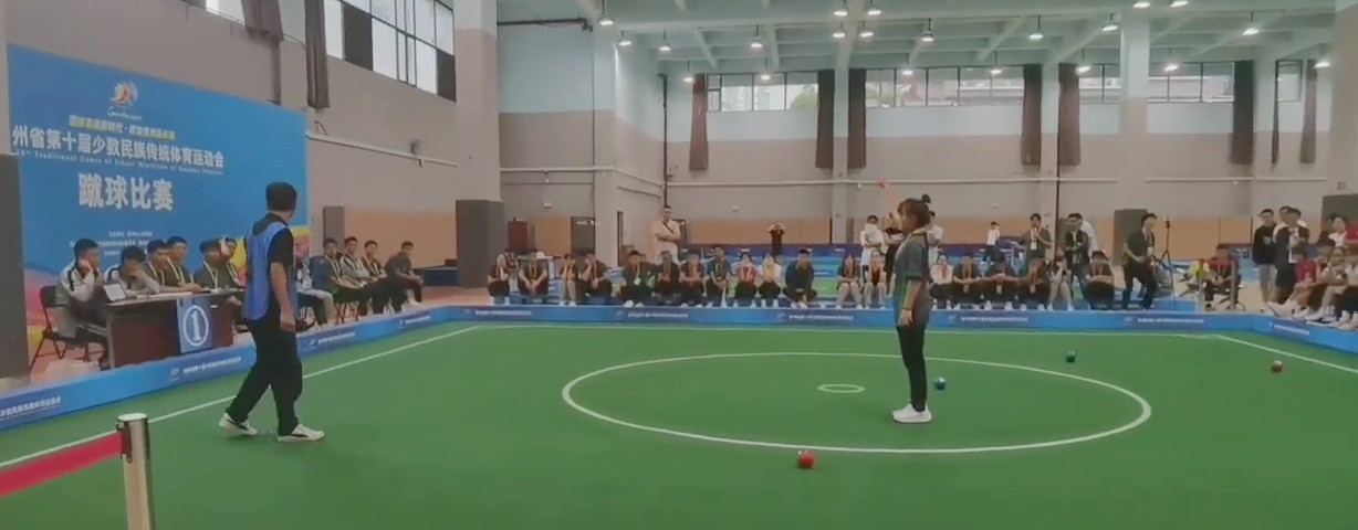 6月12日,奇乐棋牌体育学院2019级体育教育专业学生周丽敏在贵州省第十届少数民族体育运动会蹴球比赛混双项目中斩获安顺代表团首金。