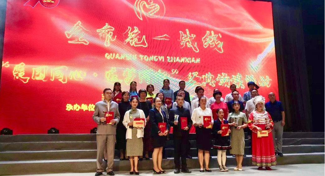 9月24日,为庆祝新中国成立70周年,发扬爱国统一战线优良传统,激励广大统战成员在决战脱贫攻坚,决胜同步小康,续写富美安顺加快发展新篇章中找到最大公约数,画出最大同心圆,由安顺市委统战部主办的庆祝新中国成立70周年“爱国同心追梦同行”经典诵读比赛在安顺电视台演播大厅举行,来自安顺市各县区、民主党派、高校等单位的16支代表队参赛。经过激烈的角逐,我校荣获三等奖。