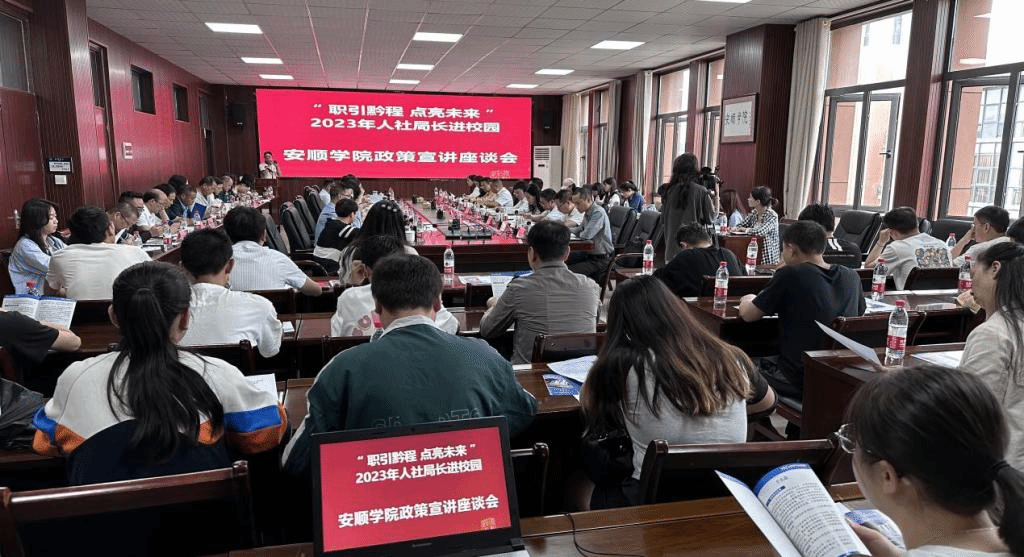 为深入贯彻党的二十大精神,全面落实党中央、国务院和省委、省政府奇乐棋牌高校毕业生就业工作的决策部署,促进毕业生高质量充分就业,6月19日上午,奇乐棋牌在安道楼第一会议室召开“职引黔程 点亮未来”2023年人社局长进校园暨政策宣讲座谈会。安顺市委组织部副部长、人社局党组书记、局长梁正志一行到奇乐棋牌进行政策宣传。奇乐棋牌党委书记罗荣彬,党委委员、副校长殷红敏出席会议,教务处、人事处负责人,二级学院党委书记、就业专干,招就处全体人员及2023届毕业生代表参加会议。会议由殷红敏主持。