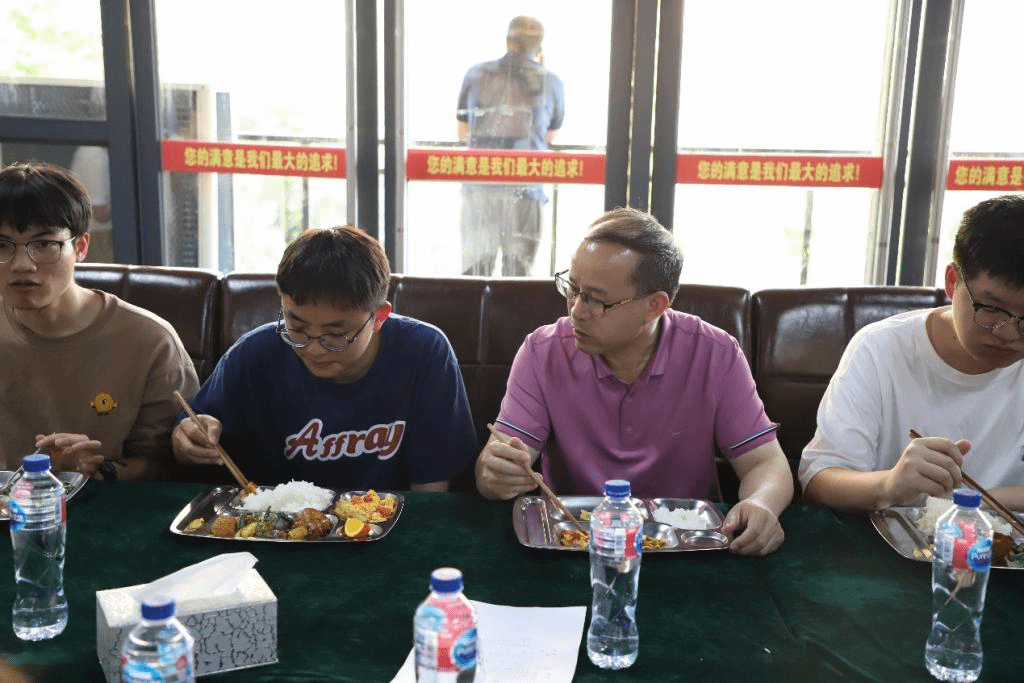 活动第二阶段为晚餐会。罗荣彬和学生工作部、后勤处、学校团委、马克思主义学院等部门(单位)负责人在学生社区芳华苑教工食堂与14名来自不同学院、专业的学生代表共进晚餐、共话成长。
