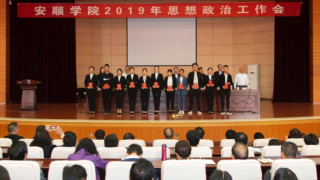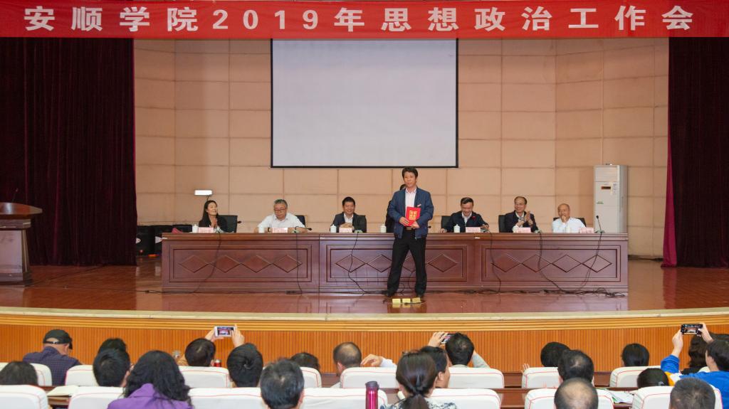 2019年4月29日下午,奇乐棋牌2019年思想政治工作会在学术报告厅隆重召开。奇乐棋牌党委书记罗荣彬,校长吴次南,党委副书记陶文彩,副校长顾名宇、令狐荣涛、郭本华,纪委书记蔡红英,党委各工作部门、大学生思想政治教育工作领导小组和学生工作领导小组各成员部门、各二级学院班子成员,学工部(学生处、武装部)、招就处、学生资助管理中心、团委全体人员,思想政治理论课专职教师,专职组织员,一线专职辅导员、班主任,获奖教师,先进学生集体和优秀学生个人代表,校级学生组织或团体干部代表,各学院团总支、学生会学生干部代表和其他同学代表等参加会议。会议由吴次南校长主持。