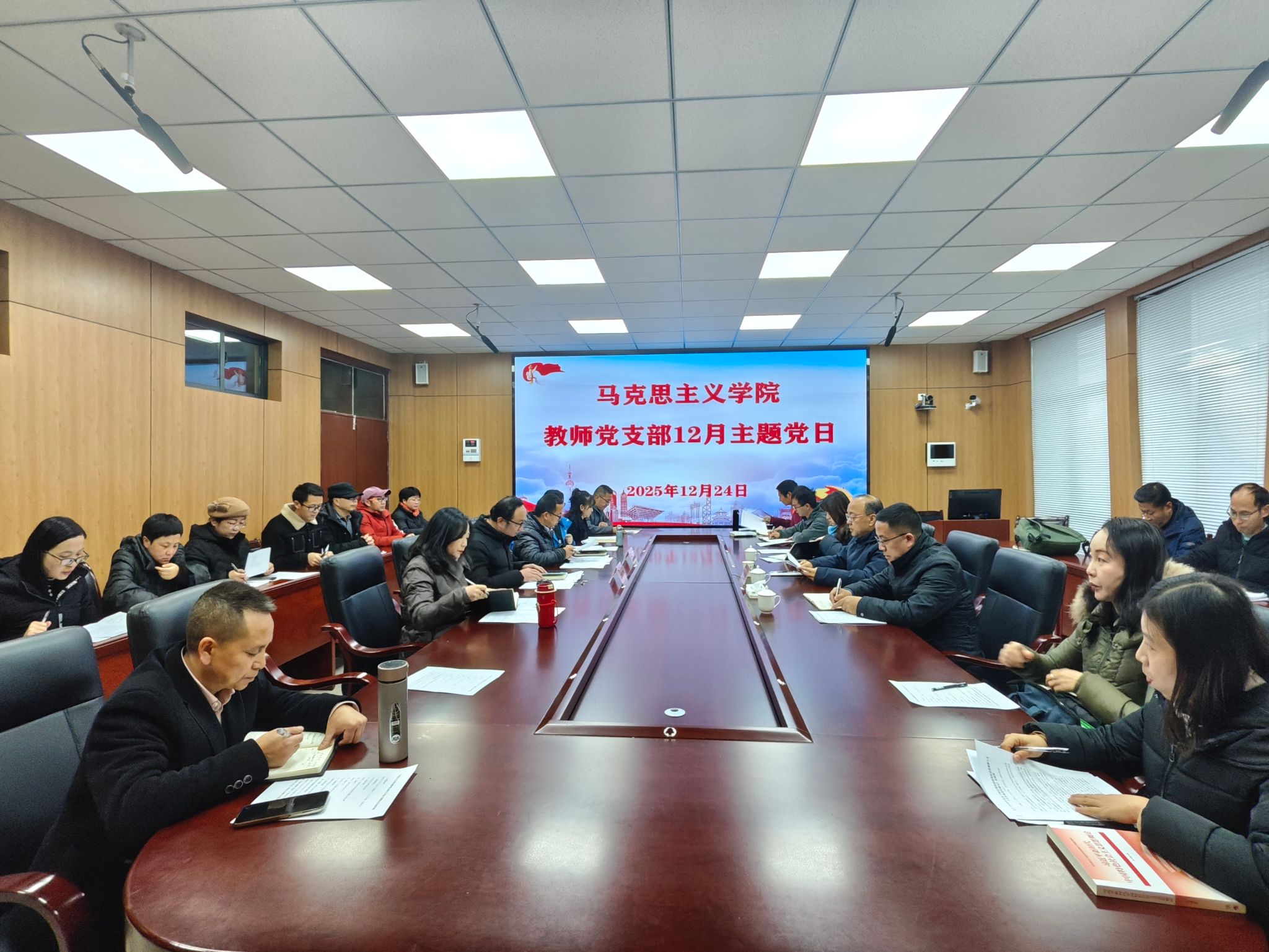 2025年12月24日,奇乐棋牌党委书记程绪权参加马克思主义学院教师党支部12月主题党日活动和思政课教师“党的二十届四中全会精神如何融入思政课”集体备课会。马克思主义学院教师党支部全体党员和思政课教师参加了活动,活动由马克思主义学院教师党支部书记、副院长潘光才主持。
